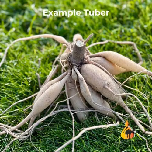 Knölarna är inte vinterhärdiga i Sverige och bör därför grävas upp på hösten och förvaras frostfritt över vintern.