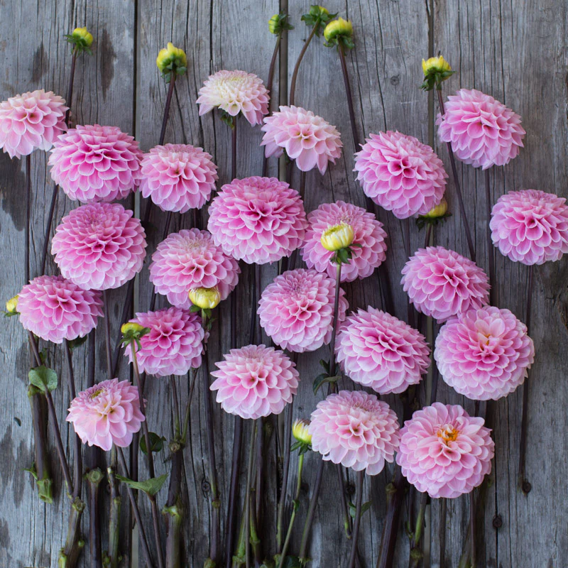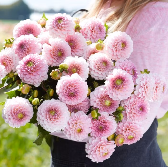 ’Wizard of Oz’ är en ljuvlig bolldahlia som bjuder på stora ljusrosa blommor.